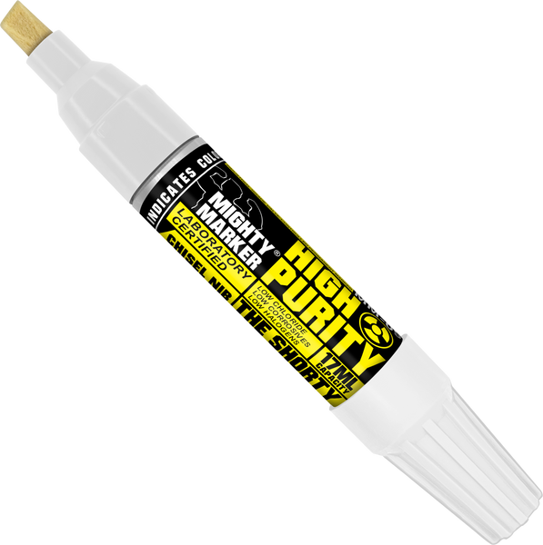 These markers contain laboratory certified, low corrosive, low halogen, high-purity inks or paints. They are used to safely mark stainless steel, titanium, and other exotic metals in settings that require low corrosive requirements like aerospace and nuclear industries. These paints meet or exceed requirements of various aerospace specs such as GE# D50TF8-S7, and various nuclear grade specs such as GE# D50YP12. These pens are also certified for Westinghouse, Pratt & Whitney, and Chicago Bridge & Iron.